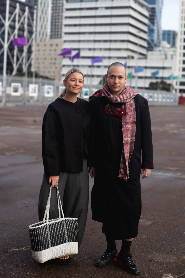 Winnie Solomon, and Vince Ropitini, Massey Graduate and Designer at NZFW.