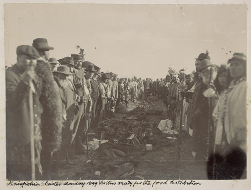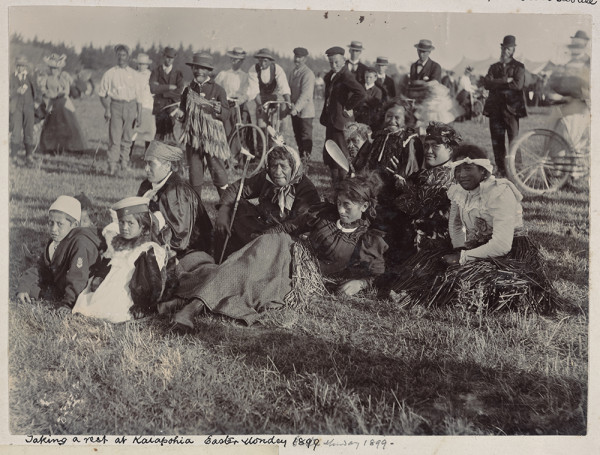 The event captured the attention of local journalists and photographers whose efforts have left us, more than 125 years later, with a detailed visual and written record of the day. Photographic journalism was relatively new to New Zealand at the time and the Weekly Press where many of these images first appeared, was a leader in the field. The photographs featured here are taken from a series of albums compiled by journalist, businessman, local historian, and local body politician Joseph Lowthian Wilson who worked as the Kaiapoi agent for the Christchurch Press. Kāi Tahu-related images from these albums have been digitally repatriated to the Ngāi Tahu Archive and are available to view on Kareao. The original albums are held at the Alexander Turnbull Library.