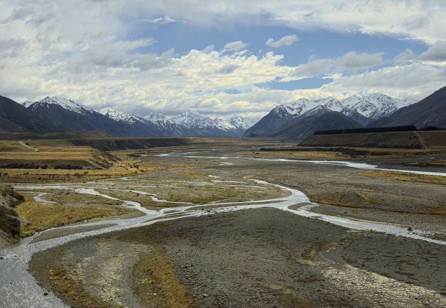 The Ahuriri River flows through the southernmost part of Te Manahuna. Before the creation of Lake Benmore, the Ahuriri River flowed directly into the Waitaki River. In 1880, Kai Tahu kaumatua recorded Ahuriri as a kaika nohoaka and kaika mahika kai where tuna, pora (turnip), weka, and purau (‘Maori onion’) were gathered.
